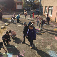 "Ми за мир". Учні третіх класів - малюнок на асфальті.
